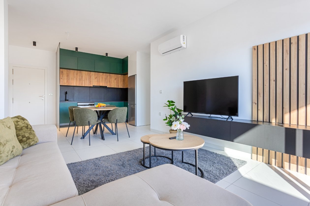 Experience the comfort and elegance of Casa Blanca, a modern and stylish apartment where tranquility, light and space take center stage. The cozy living room with open designer kitchen, dining area and comfortable sitting area with television is the heart of the apartment and offers a relaxing, high-quality living environment.