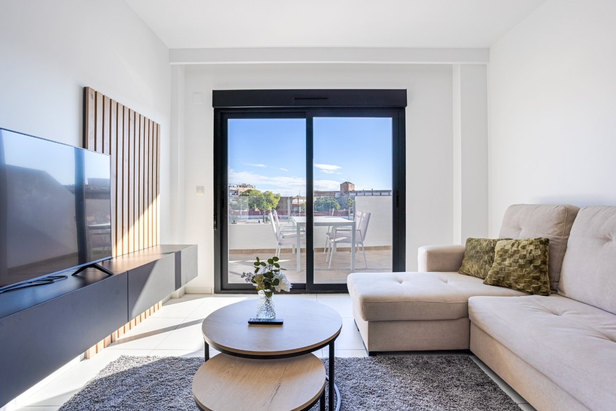 Enjoy peace, comfort and sunshine in this modern apartment in Paradise Resort, San Miguel de Salinas. The apartment features a bright living room, a fully equipped kitchen, 2 comfortable bedrooms and 2 bathrooms, making it an ideal place to relax and unwind. The spacious terrace with morning sun is perfect for quietly starting the day with a cup of coffee or breakfast.