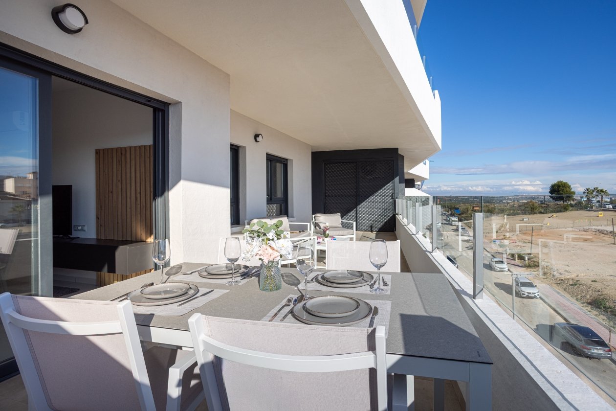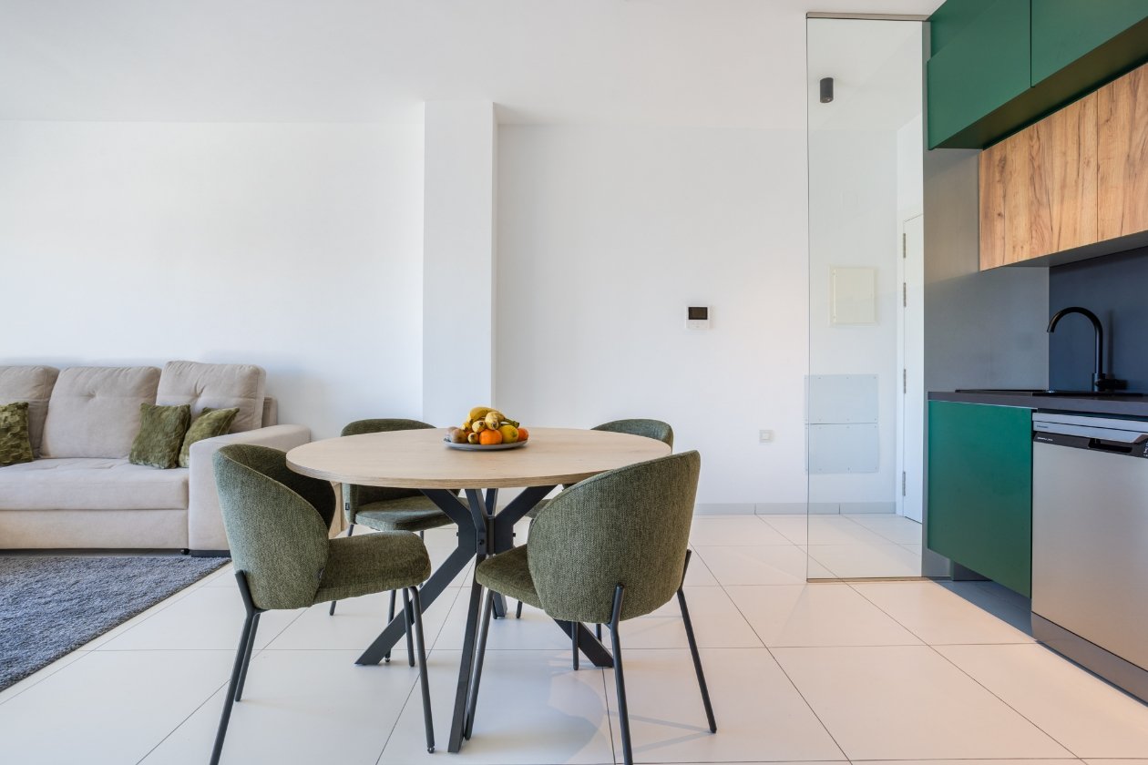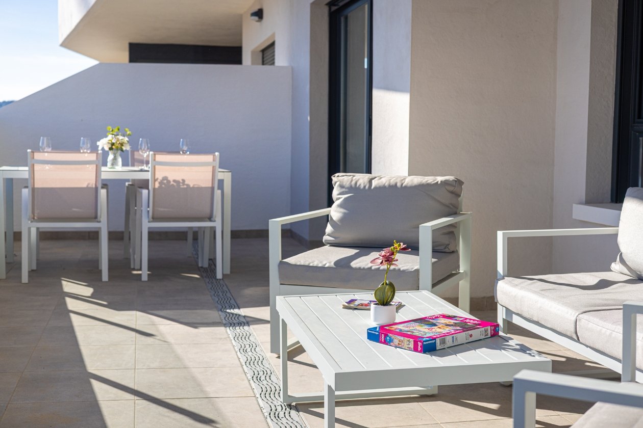 Enjoy a relaxing stay in our modern and new penthouse in Casa Blanca, Paradise Resort, located in the quiet and green area of San Miguel de Salinas. The apartment can accommodate four people and features two comfortable bedrooms, two bathrooms, a cozy living room, a fully equipped kitchen and a large private terrace with morning sun.