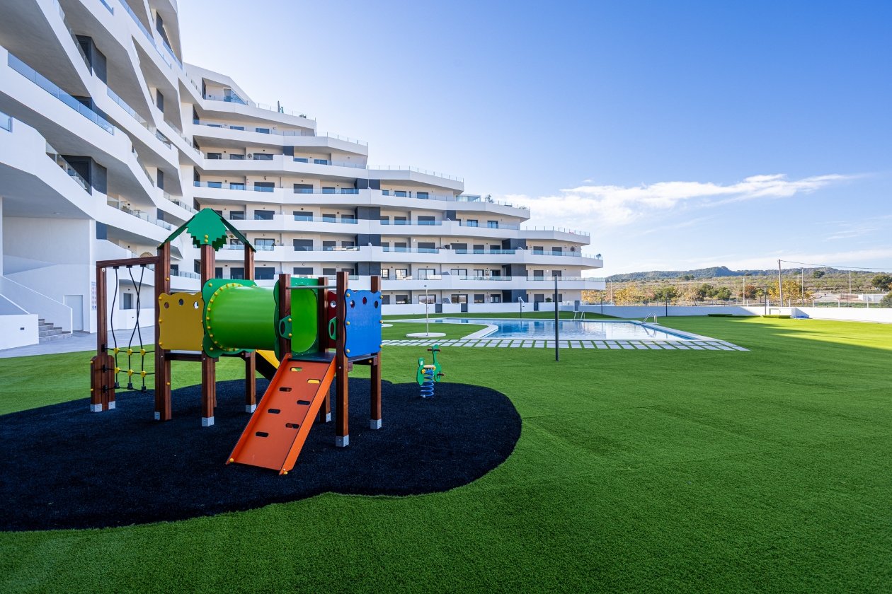 The resort offers a beautiful, well-kept environment with a large communal pool and children’s pool, where you can relax and enjoy the Spanish sun. Its quiet location makes it the perfect place for those seeking comfort, tranquility and luxury.